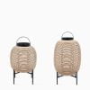 Una linterna de energía solar que seguramente dejará brillar su área exterior. La canasta tejida de color camel crea un impresionante juego de sombras, mientras que la base de acero le da un toque industrial.